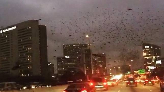 Video tersebut direkam oleh salah seorang pengemudi yang menyaksikan sendiri saat kawanan burung hitam itu ramai-ramai menyerbu kota dengan pola terbang yang tidak teratur.